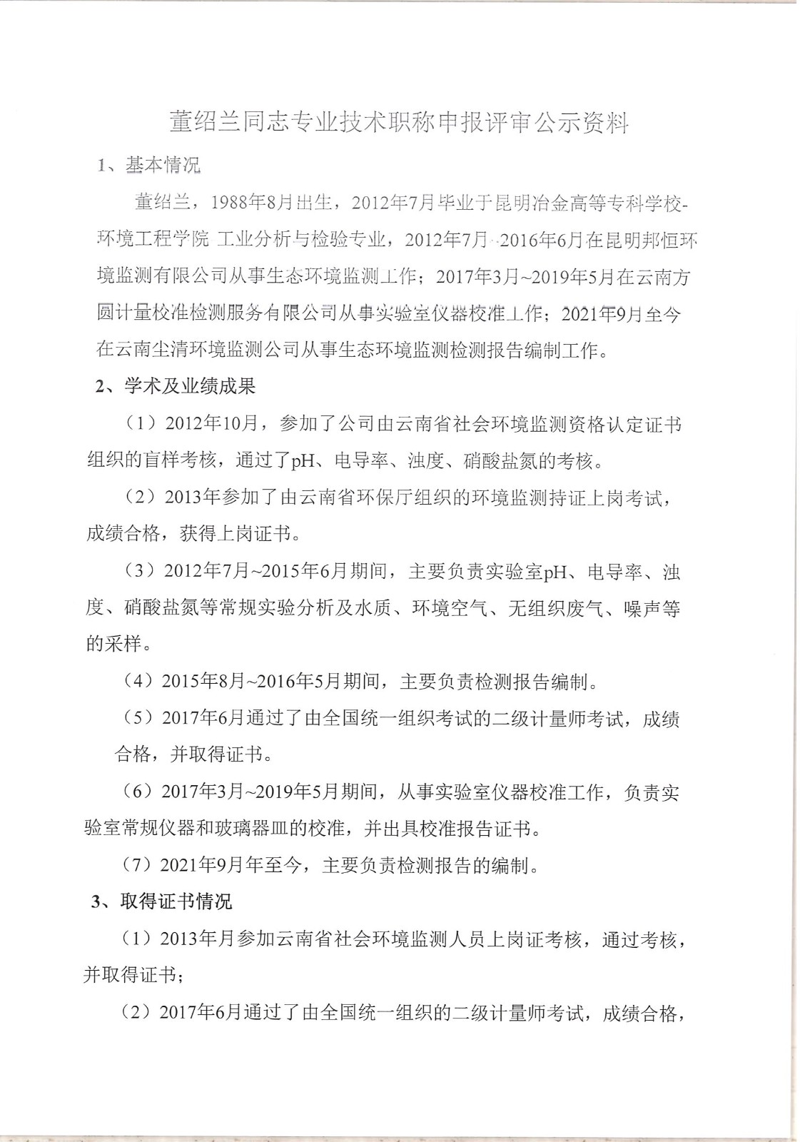 關(guān)于董紹蘭同志申報助理工程師專業(yè)技術(shù)職稱的公示(公示時間:2022年7月18日至7月24日)