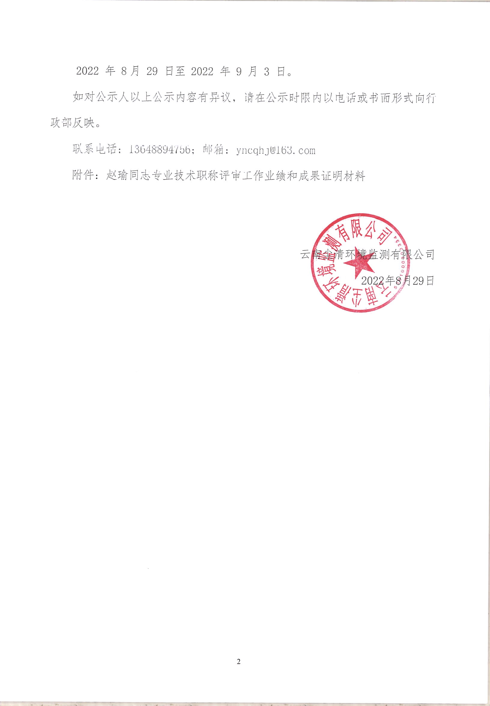 關(guān)于趙瑜同志申報(bào)高級(jí)工程師專業(yè)技術(shù)職稱的公示(公示時(shí)間:2022年8月29日至9月3日)